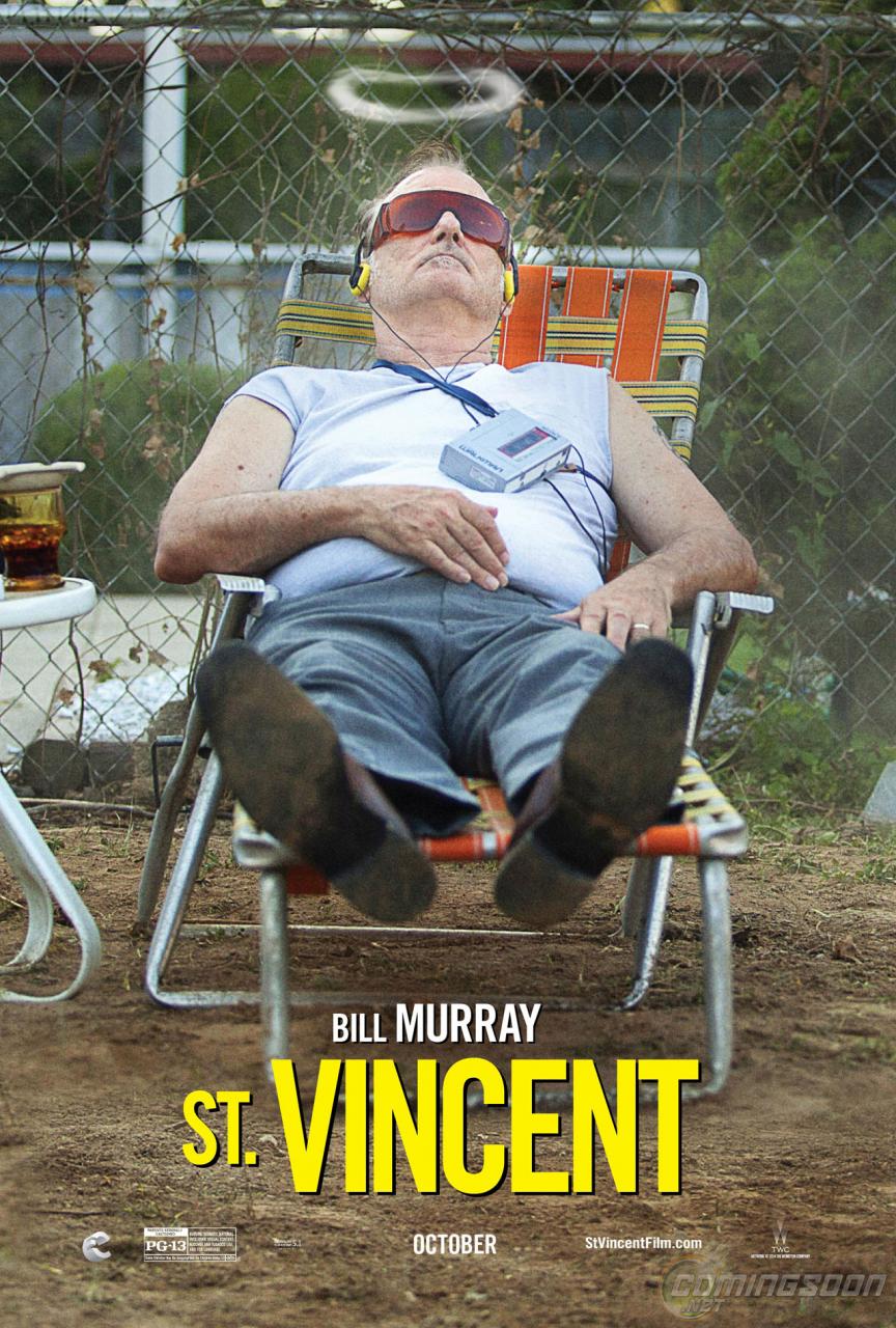 En el 2014 y a sus 64 años Bill Murray vuelve a la pantalla grande en St. Vincent, una comedia dramática con la dirección de Theodore Melfi. Murray nos acerca un personaje digno de su piel: Vincent, un veterano de la guerra de Vietnam misántropo y hedonista. Lo acompaña Jaeden Lieberher interpretando a Oliver, un niño de 8 años cuyos padres se han divorciado recientemente y llega junto a Melissa Mc Carthy( Maggie) a vivir a la casa de al lado de Vincent. Aunque a Vinn no le gusta sociabilizar, poco a poco entabla con el niño una relación de amistad. A la historia se suman otros personajes con historias comunes y complicadas que colaboran en relatar y darle contexto a la historia principal.